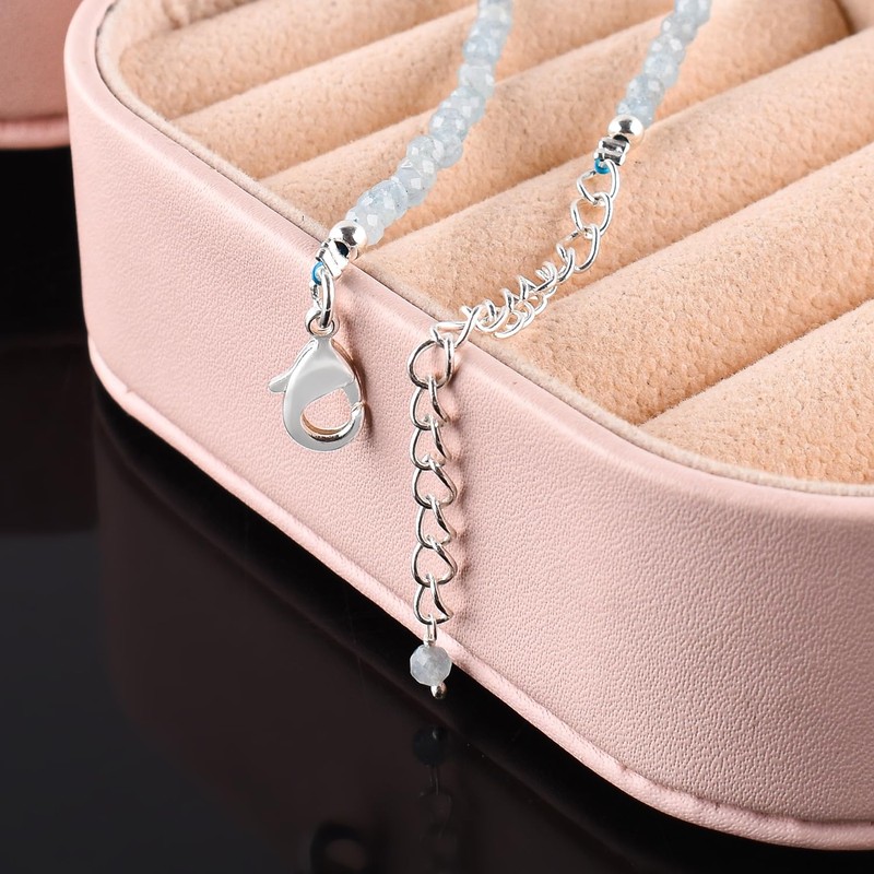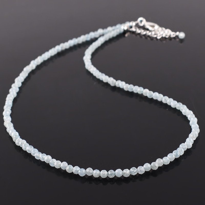 - Details - Gemstone: Aquamarine | Gemstone Origin: Africa | Gemstone Color: Blue | Jewelry Style: Choker Necklace | Birthstone Month : March | Stone Cut : Faceted | Stone Shape : Rounds | Stone Quality & Grade : Premium | AA+ | Metal : Silver Plated Brass | Stone Weight : Approx. 25 carats | Stone Size : Approx. 3+mm | Stone Treatment : Natural | Jewelry Length : 16+2 inchs | Closure by a lobster lock and Extender Chain made of Silver Plated Brass