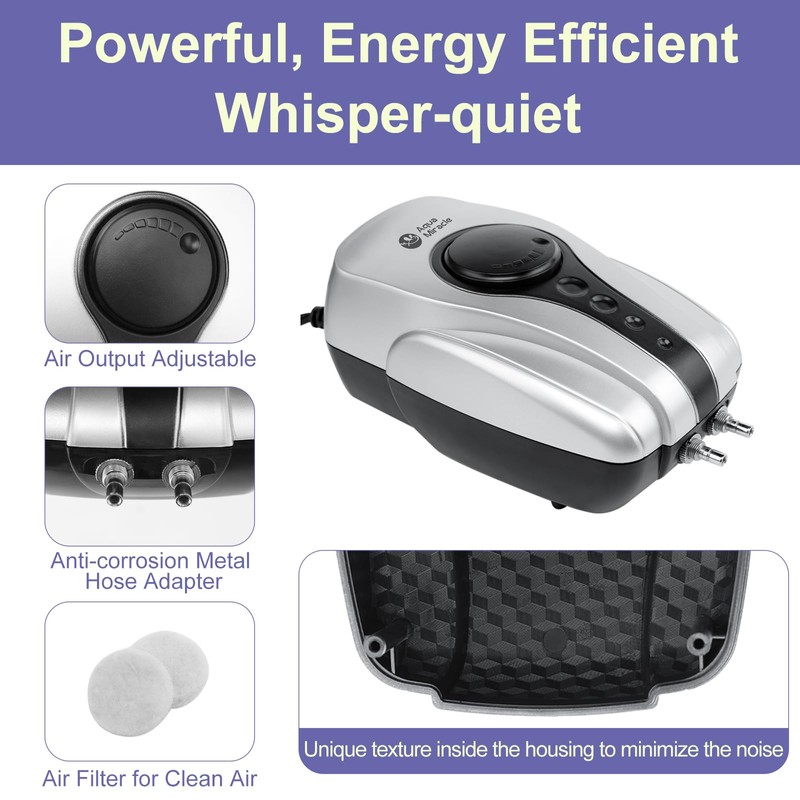 - WHISPER-QUIET OPERATION - Experience tranquility with this koi pond aerator, as it operates with minimal noise. The straight airflow path, textured inside-housing design, and vibration-relieving rubber feet ensure super silent operation, providing a peaceful environment for your pond.