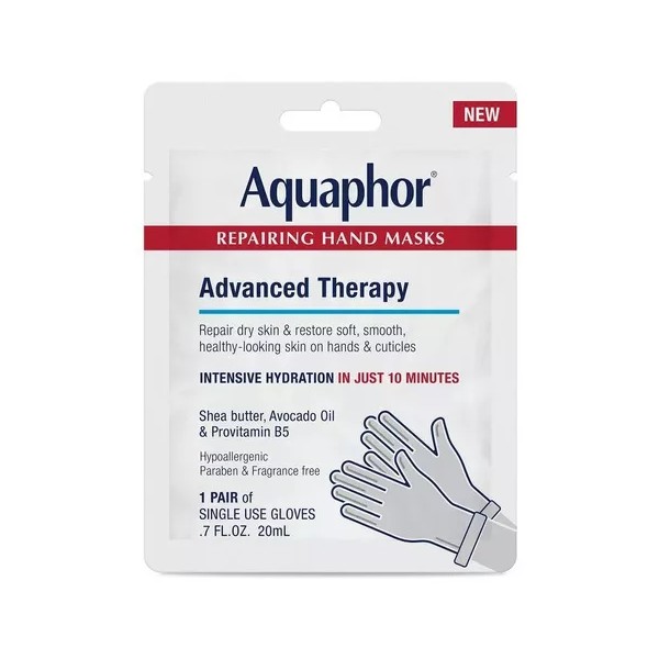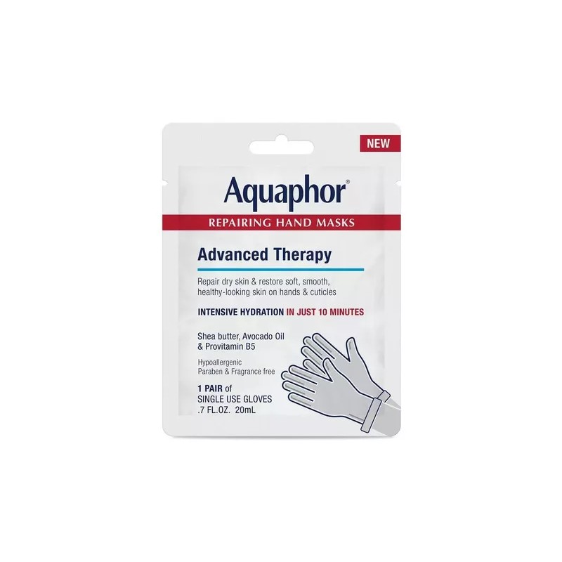 Los guantes acondicionadores e hidratantes están enriquecidos con una mezcla de aceite de aguacate y manteca de karité, además de los ingredientes distintivos de Aquaphor: Provitamina B5, Glicerina y Bisabolol.