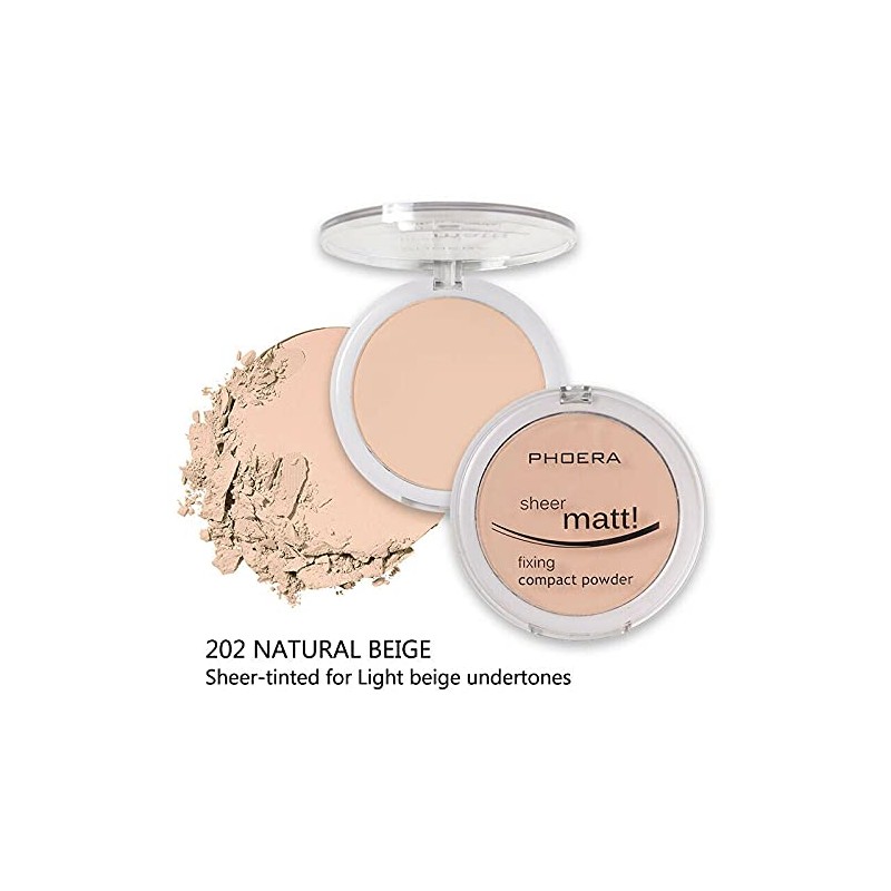AQUAPURITY - PHOERA Sheer Matte Fixing Powder Makeup Base Fixer Setting Powder Foundation Fixing Compact Pressed Powder Long Lasting Make Up Fixer Skin Vitamin E Beauty Blender (202 Natural Beige…)