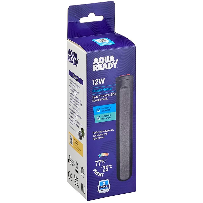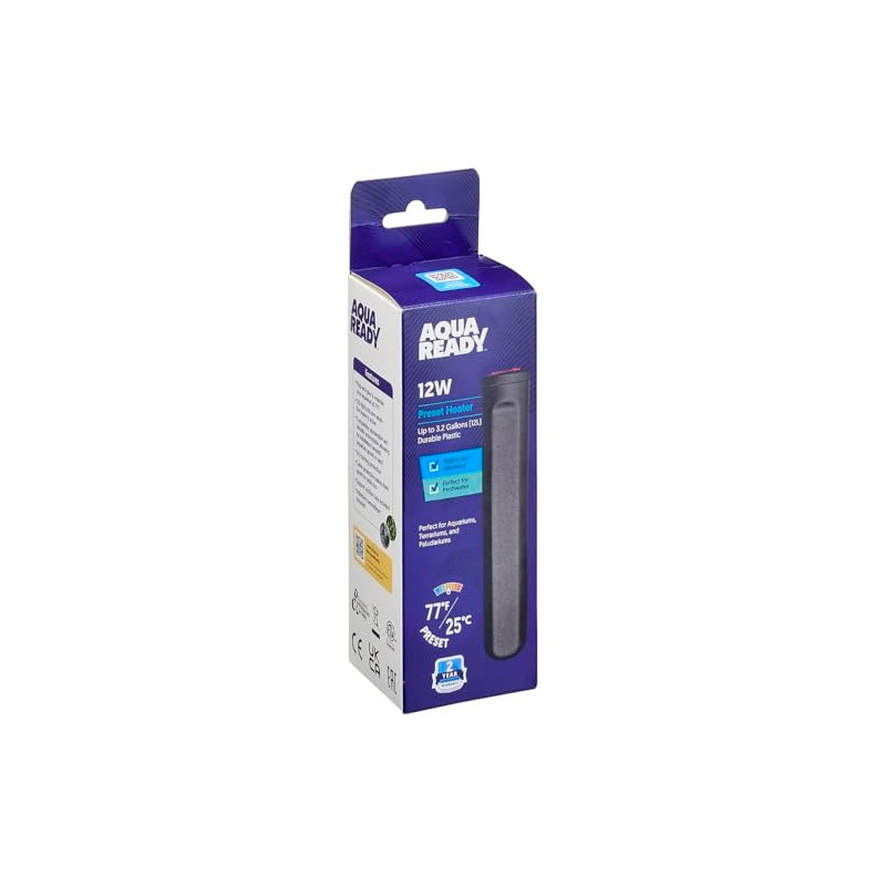 AquaReady 12w Preset Aquarium Heater - Submersible Fish Tank Heater for Freshwater & Saltwater Aquariums, Reliable & Energy Efficient, Compact Design for 3 Gallon Tanks
