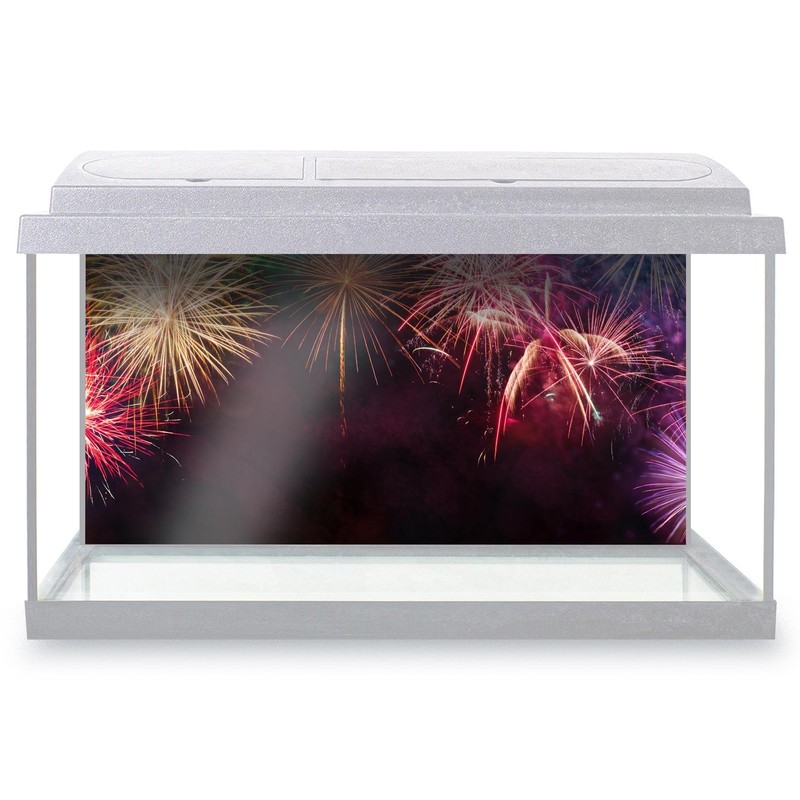 Aquarium Fish Tank Background 90x45 cm - Pretty Fireworks Display Fire Static Cling Vinyl Vivarium Terrarium External Application #51786