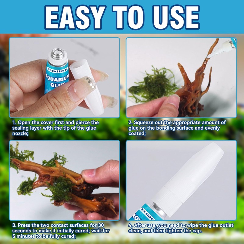 - Wide application: Our aquarium safe glue can be used for aquarium adhesive coral, aquatic plants, submerged wood, moss, artificial decorations and other materials of the aquarium supplies, suitable for aquarium layout, scenic fish ponds, rockery bonding, creative flower pots, etc., is the ideal choice for aquarium aquascape and maintenance