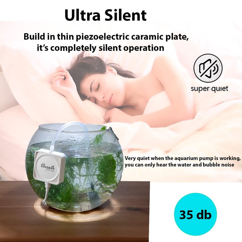 - Ultra Silent No noise from 50 cmdistance Minimum 35dB, This air pump is just driven by a thin piezoelectric ceramic plate, totally different from traditional electromagnetic air pump, No motor, No membrane, No other troublesome mechanisms, which makes it super quiet, light weight and long service life.