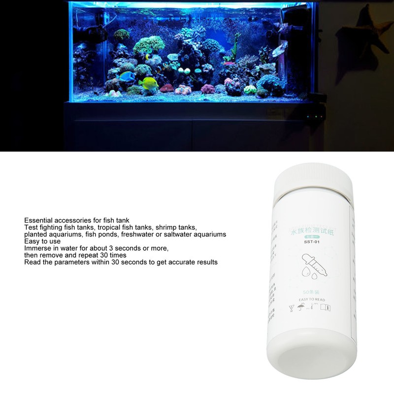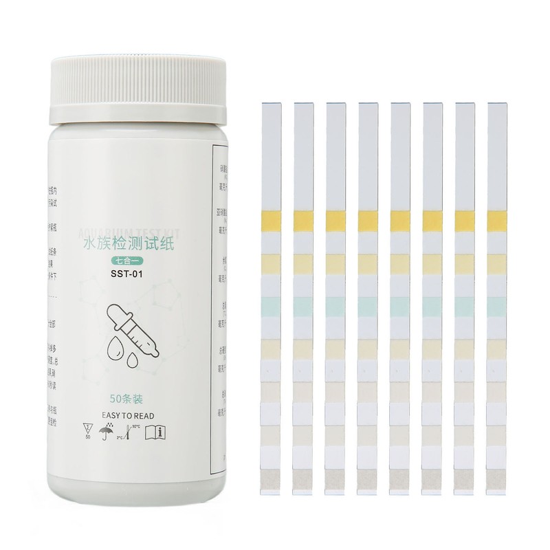 1、7 IN 1 DESIGN: Fish tank pond test strips feature a 7 in 1 design that tests for total hardness (GH), nitrate (NO3), nitrite (NO2), chlorine (Cl2), total alkalinity, carbonate (KH), and pH. 2、FIBER PAPER: 7 in 1 aquarium water test strips are made of fiber paper without color leakage pad, the test result is instant and reliable, the test paper does not leak color. 3、EASY TO USE: Aquarium test strips are immersed in water for approximately 3 seconds or more, then removed and repeated 30 times. Read the parameters within 30 seconds to get accurate results. 4、WELL PACKED: Packaged in a well sealed bottle to ensure it can be stored for 2 years. Remove one test strip from the bottle and close the cap tightly to help avoid oxidation. 5、FISH TANK ESSENTIAL ACCESSORIES: Water quality testing strips can test fighting fish tanks, tropical fish tanks, shrimp tanks, planted aquariums, fish ponds, freshwater or saltwater aquariums.