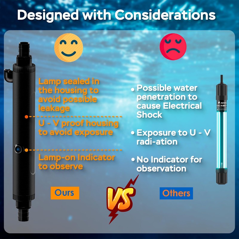 Devopet Aquarium U-V Light, Al-gae Clean Light for Fish Tank, Green Water Clean Lamp with Timer, Amphibian Aquarium U-V Lamp for in-Line and in-Tank Use, for 75-120 Gallons Fish Tanks(10W)