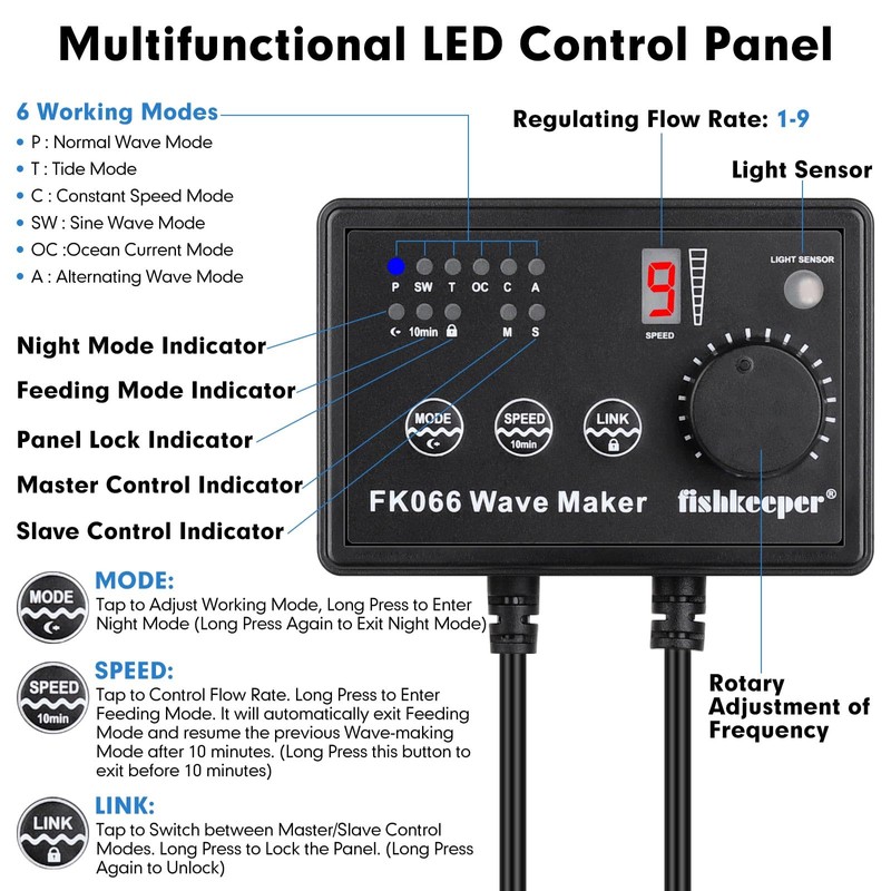 fishkeeper Aquarium Wave Maker, 1600GPH Adjustable Submersible Aquarium Powerhead with Magnetic Suction Base for 15-90 Gallon Tank Circulation Pump for Saltwater Freshwater