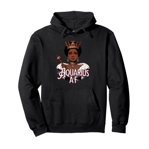 Aquarius AF Vibes Queen Energy Zodiac Crown Afro Regal Pullover Hoodie