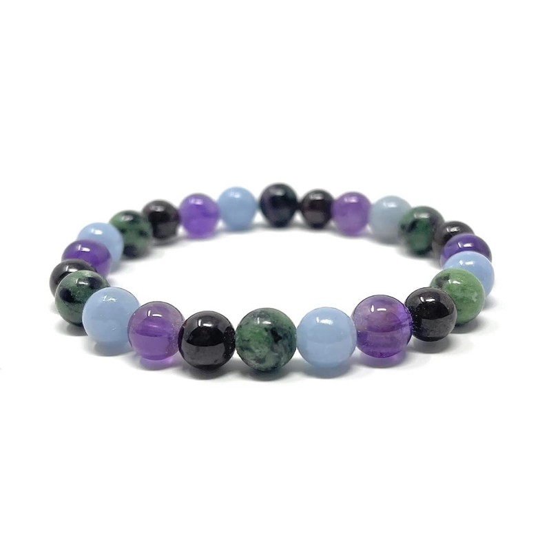 Made using the following quality power beads 8mm - Garnet, Angelite, Amethyst, Ruby in Zoisite.