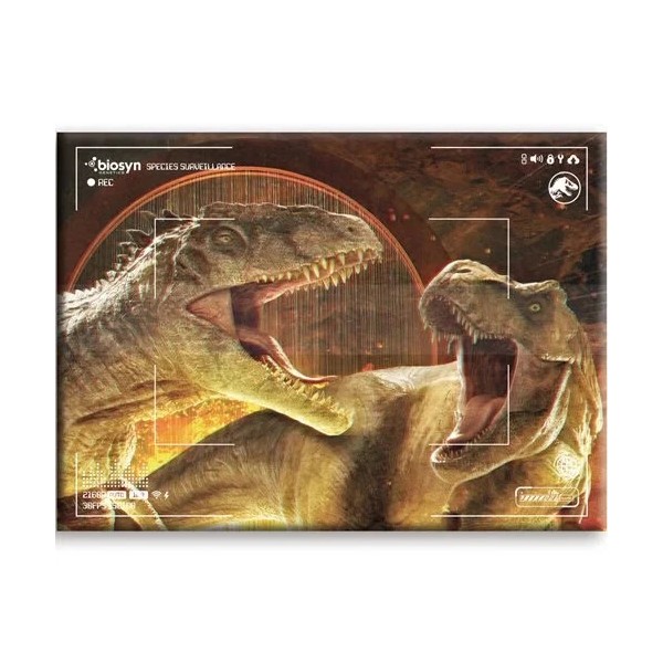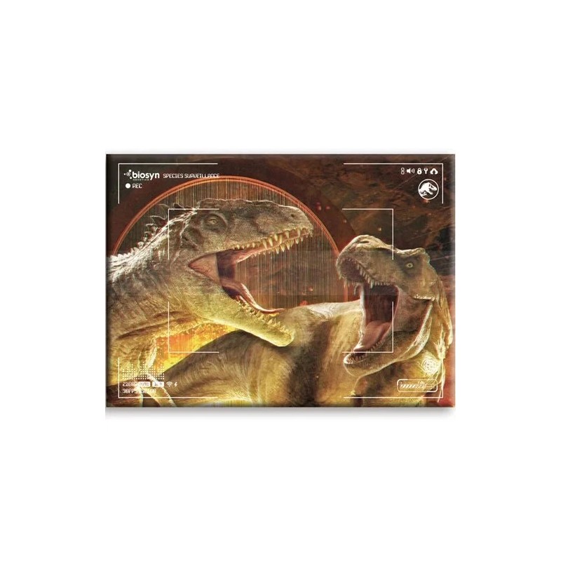 Add some prehistoric fun to your refrigerator or any metal surface with this Jurassic World Giga vs. T-Rex flat magnet. It measures 2 1/2-inches tall x 3 1/2-inches wide. Ages 14 and up
