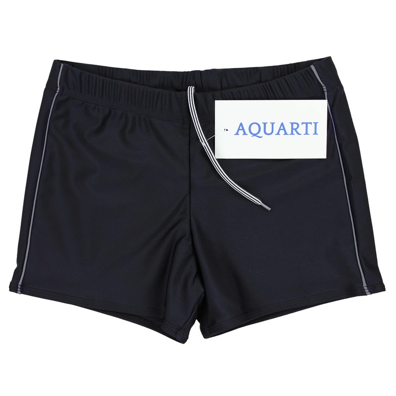 Aquarti Men's Swimming Trunks Short with Contrast Piping, black/grey