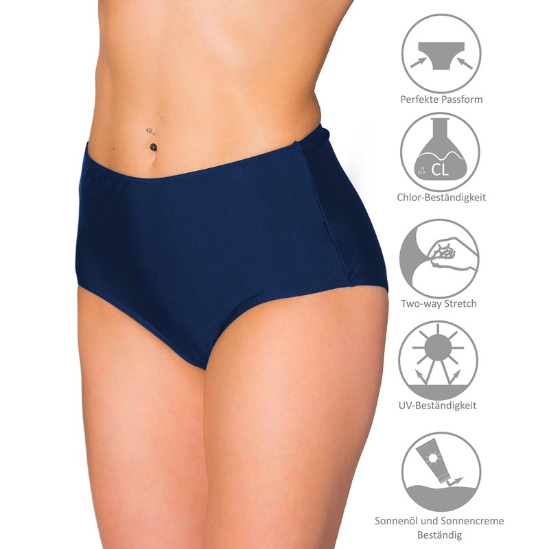 Simple, high-waisted bikini bottoms in beautiful classic colours: brown, dark blue, graphite grey and black. Ideal for the swimming pool and beach.