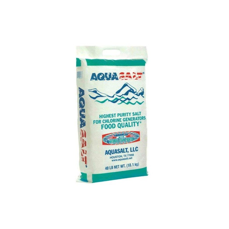 Aqua salt is 100% pure, certified USP-Grade salt, produced specifically for swimming pool and spa chlorine generators. The evaporated manufacturing process is familiar to most people as table salt or food grade salt. Aqua salt is packaged solely for use in swimming pools and spas with chlorine generators and is not intended for human consumption. Aqua salt should be distributed over the greatest water surface area possible to result in the fastest dissolve rate. Follow the Chlorine Generator Manufacturer guidelines for quantity and frequency of adding salt. Avoid piling the salt on the pool surface and brush as necessary until fully dissolved. 40 pound bag size.