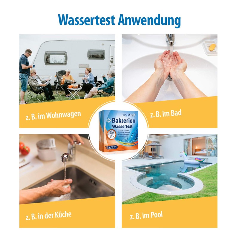 - Test quickly and easily whether your water is contaminated with bacteria. Ideal for drinking water at home or for longer holidays.