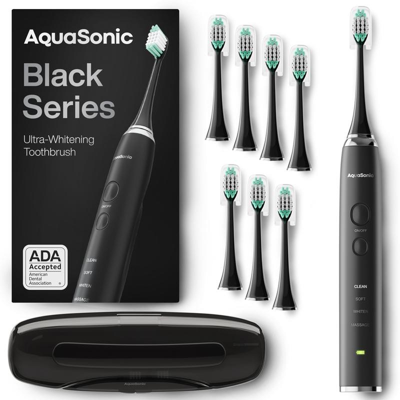AquaSonic Black Series Sonic Whitening Toothbrush with 8 Brush Heads and Smar...