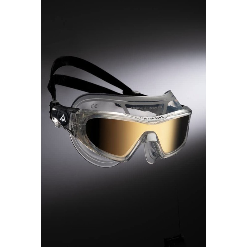 Aquasphere Vista Pro Unisex Adult Swim Goggles - Curved Single Lens Vision Design - Perfect for the Open Water Adventure Swimmer | Mirrored Lens, Transparent/Black Frame