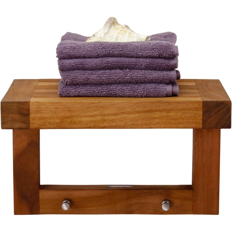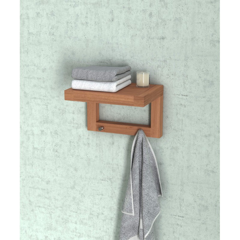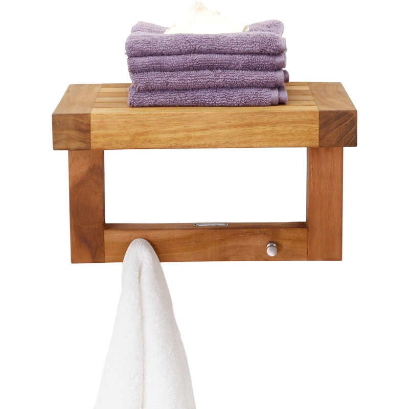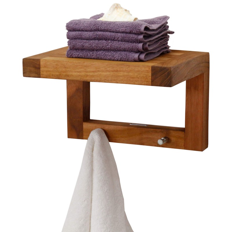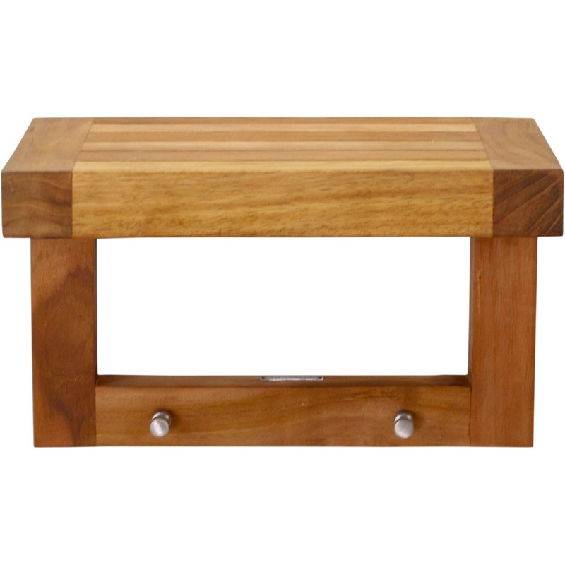 AquaTeak 12" Moa Teak Flat Wall Shelf with Hooks