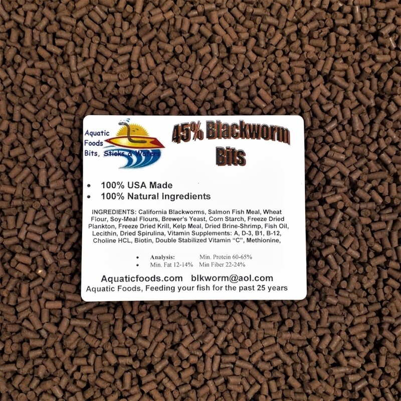 Aquatic Foods Inc. 45% Blackworm Sinking Bits, APX 1/8" x 5/16" Sinking Bits Perfect for Small Discus, Small & Medium Cichlids, All Tropical Fish - 1/8-lb