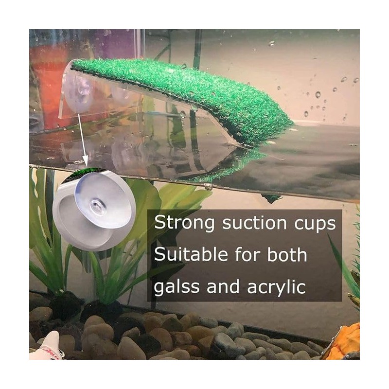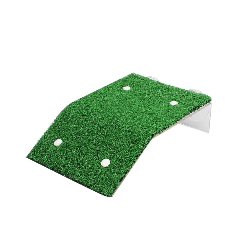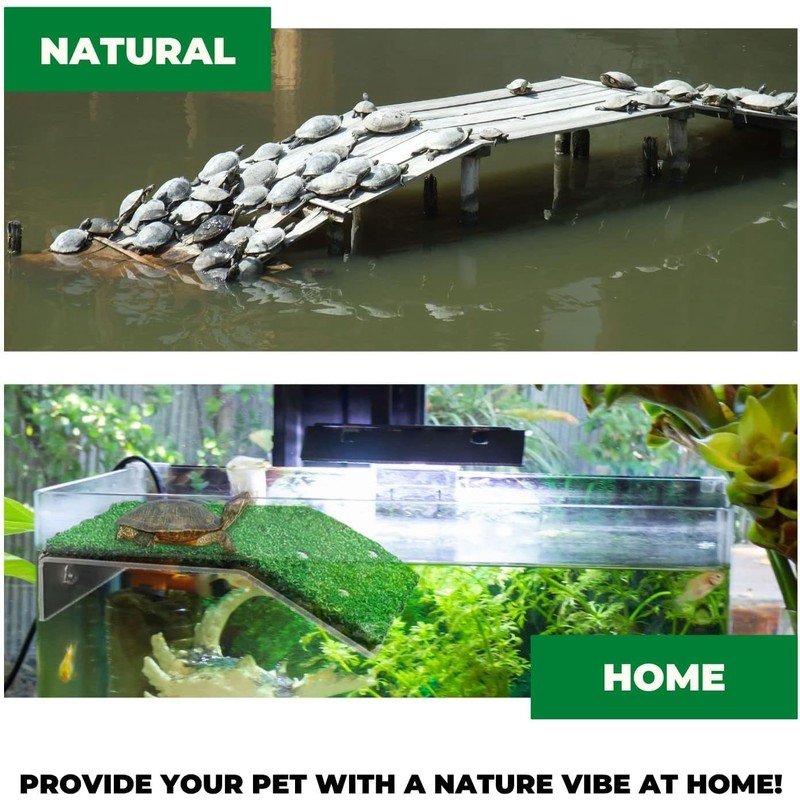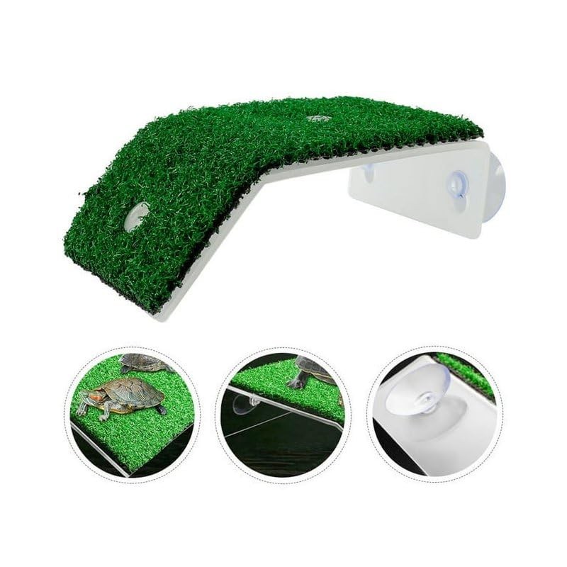 The turtle floating dock tortoise ramp with artificial green turf offers filtered shaded light under may be placed at any level above or even beneath the water. Our turtle ramp creates a safe hiding zone, giving the turtle a pristine and comfortable habitat environment. Suitable for decorating and maintaining your aquarium, turtle tank & pond. Suitable for tortoise, lizard, frog, salamanders, newts, gecko, or other small size reptiles.