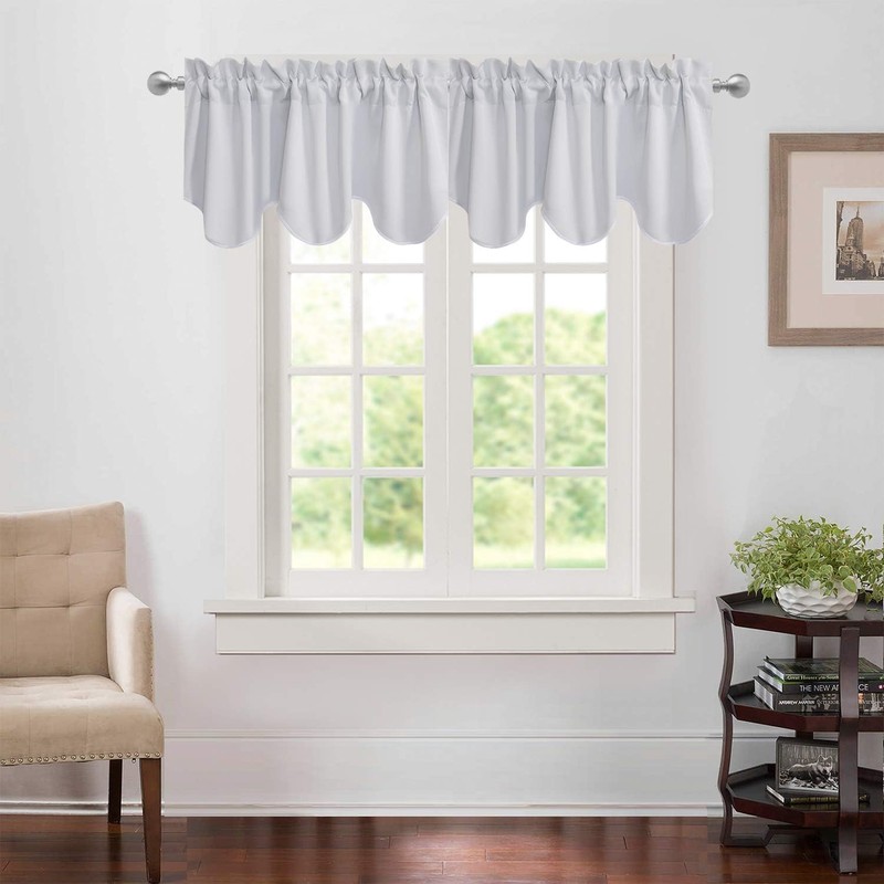 Aquazolax White Valances Curtains for Windows 2 Panels Set Rod Pocket Kitchen/Basement/Bedroom/Bathroom Short Decorative Scalloped Curtain, 52" W x 18" L, Greyish White