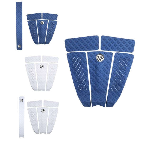 AQUBONA 5 Piece EVA Surfboard Deck Traction Pads with Kicker for Stomp Skimboards, Surf Boards, Funboard, Fish Board/White Blue