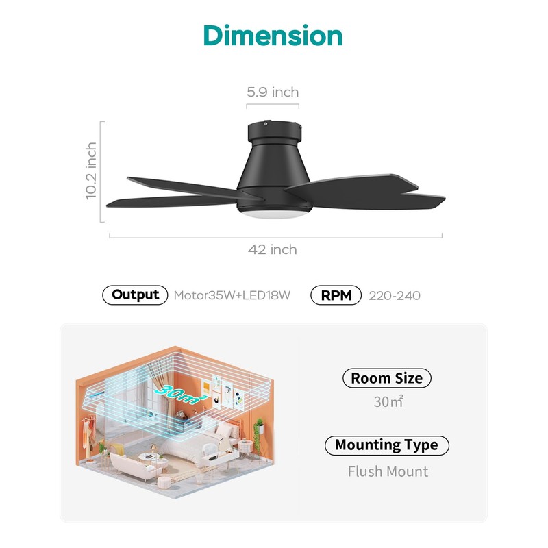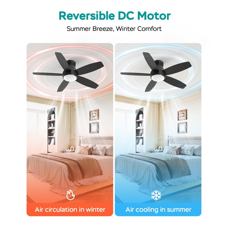 - 6-level Wind Speeds & Reversible DC motor: These ceiling fans with lightsfeature six customizable wind speeds, allowing you to tailor airflow to your comfort. Powered by a quiet, energy-saving reversible DC motor,the ceiling fans with lights and remoteoptimize air circulation effortlessly. The dual-direction function provides cooling downdraft in summerand warming updraft in winter,ensuring year-round comfort.