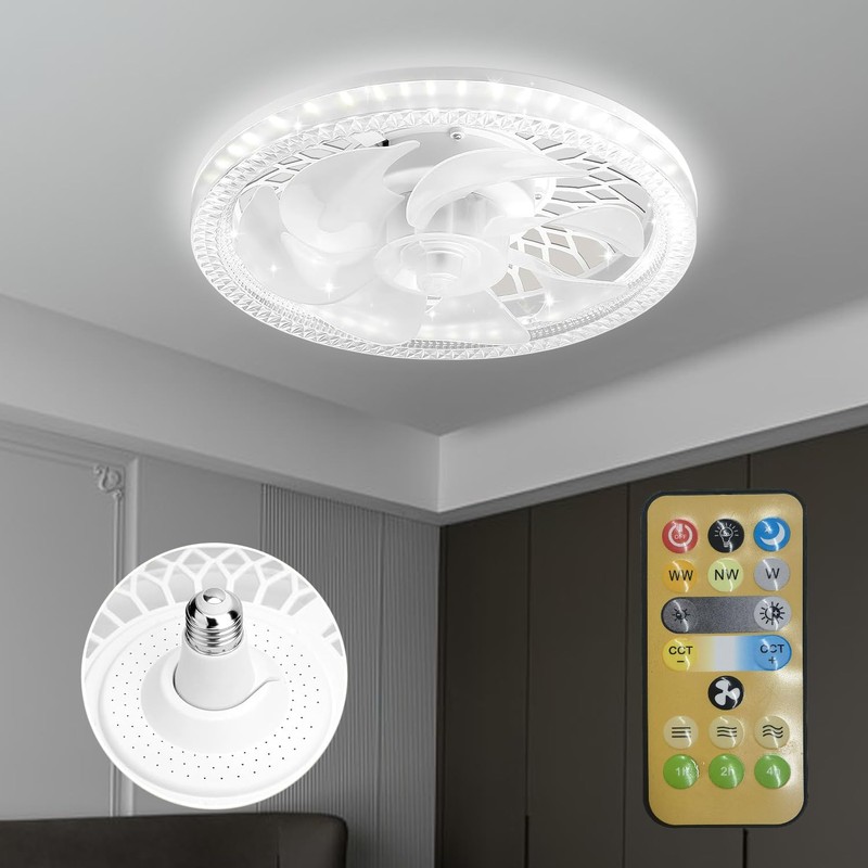 - 【Easy Installation】: Unlike bulky ceiling fans that require a lot of wiring and installation, simply screw it into the E27 bulb socket without wiring or professional assistance. Ceiling Fan Lights for Rental Easy to Remove. Allows you to effortlessly enhance your living space and take it with you when you move
