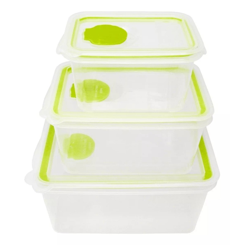 Características:3 Recipientes de diferentes tamañosTapas con escape de vaporSistema herméticoContenedores trasparentesApto para microondasCierre a presión