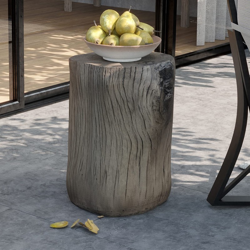 - 【Unique Design】Features a brown MgO top polished design with a sealed stump shape base. This side table beautifully marries form and function and will give a fresh new look to your home.