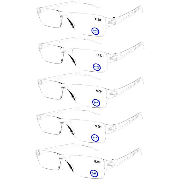 - [High Quality Readers]: 5 piece Rimless Reading Glasses, Blue light blocking and UV400 protection, Portable clear Frameless Resin Readers