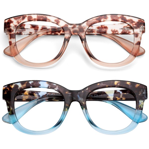 - 【FASHION DESIGNER STYLE】- Fashion oversized round designer frame reading glasses updated with a fun and colorful design for a fresh look. 4 popular color to choose design, suitable for most people, Always Have a Stylish Look and Clear Vision When You Need It, give you all day reading protect. Perfect!! It's a gift-giving ideas