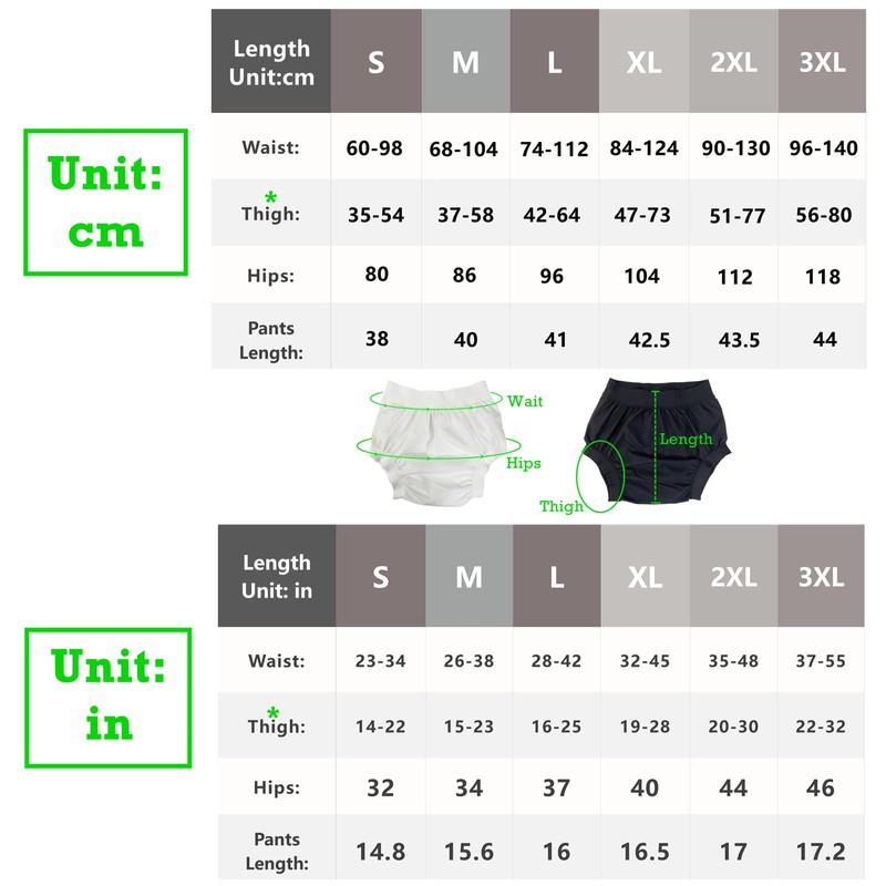 - Plastic Pants When Applicable: Our waterproof diaper covers are not only suitable for mild urinary incontinence but also perfect for nighttime use, important meetings or exams, post-surgery recovery, long drives, dementia care, disabilities, healthcare workers, prostate surgery, emergencies, and more.