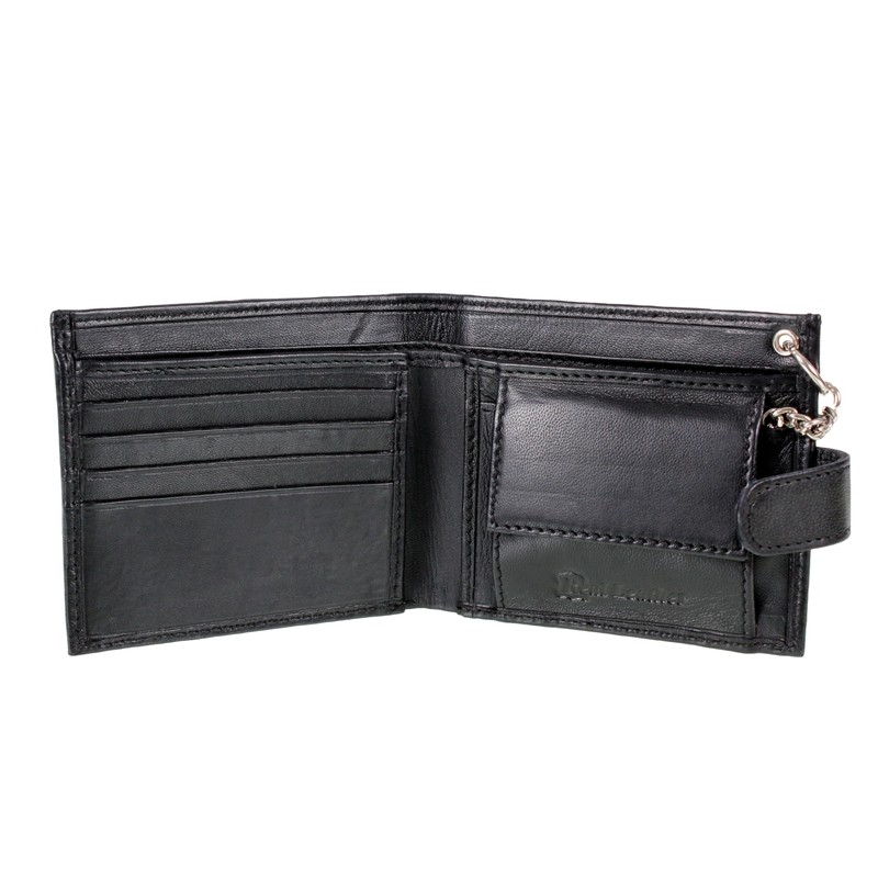 AR BRAND EST. 2021 Mens RFID Blocking Genuine Leather Wallet with Safety Chain in Black or Brown (Black)