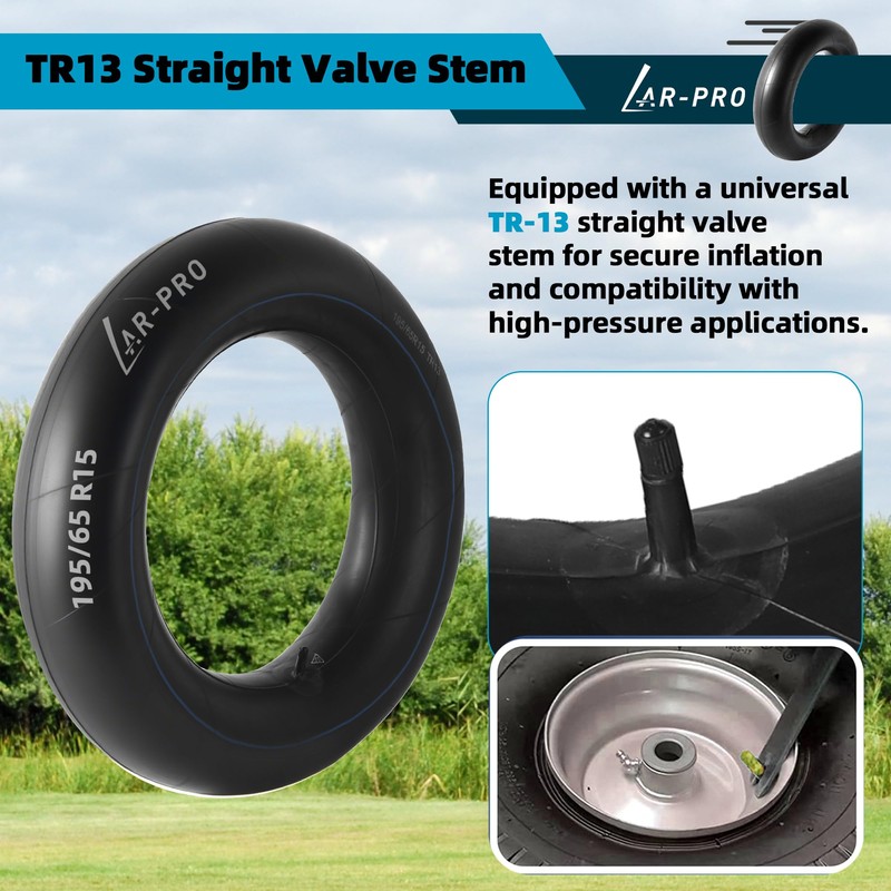 AR-PRO 195/65 R15 Heavy-Duty Inner Tubes Universal 205/65 R15, 195/65-15 with TR13 Straight Valve Stems fits More R15" Tires - Made from Durable Butyl Rubber