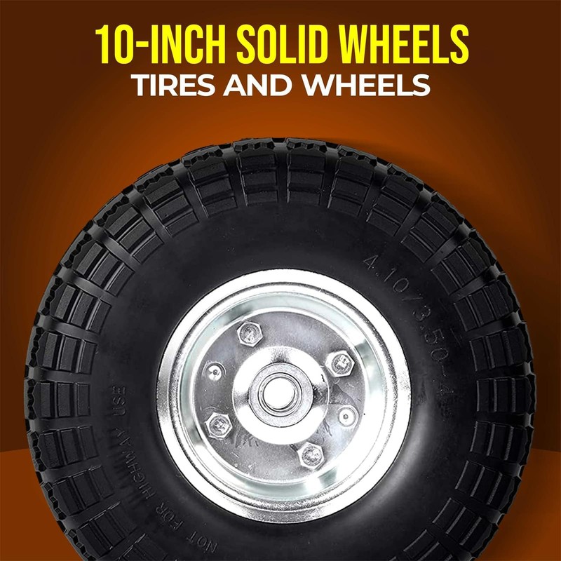- Compatible with Gorilla Carts Garden Carts: Our 10-inch 4.10/3.50-4 solid flat-free tires are widely used across commercial and home applications. They are compatible with gorilla carts, hand trucks, dollies, trolleys, wheelbarrows, yard trailers, air compressors, generators, and more, making them an excellent choice for versatile use.