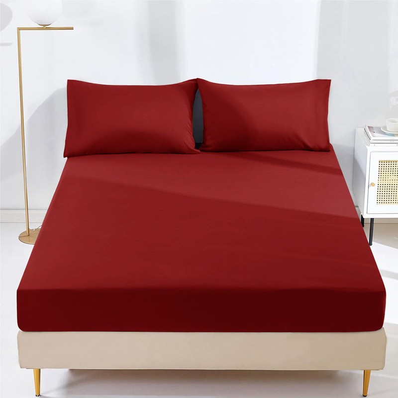 AR Ware Fitted Bed Sheet Microfibre 25cm Depth Super Soft Non Iron Shrinkage and Fade Resistant Luxury Bedding Sheets (Red, Single)