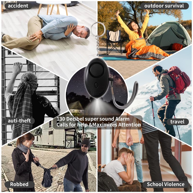 - Personal Alarm with Flashlight (Volume ≥ 130DB), Alarm is Activated by a Pull Pin.