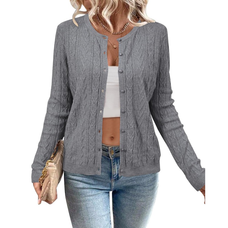 Arach&Cloz Cardigans for Women UK Lightweight Crew Neck Casual Spring Summer Ladies Sweaters Grey Heather L