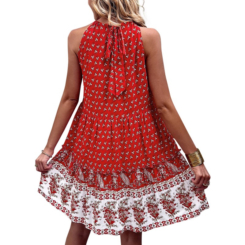 - Style & Features: Casual Mini Sun Dress For Women, Halter Neck with tie belt, Sleeveless Dress, Ruffle Layer Mini Dress, Flowy Bohemian Style, Adjustable Strap, Elastic Waist, Self-tie Belt, Casual Daily Style, Beach Style, High Waist, Boho Short Dress, Knee Above Length, Flowy Dress, Mini Length, Ruffle Hem, Side Pockets, Size S to XL.