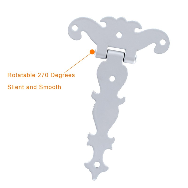- 【Package + Material】4pcs white t strap hinges,with 20pcs mounting screws. The hinge is made of zinc alloy, rugged, antirust, corrosion resistance. Long time to use. Retro design adds a different luster to your house.