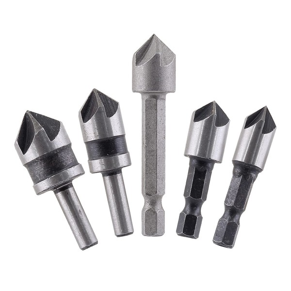 Aracombie 5pcs 5 Flutes 82 Degree Counterbore Drill Bit Set for Metal, High Speed Steel Metalworking Countersinks Deburring Chamfer Tool Set