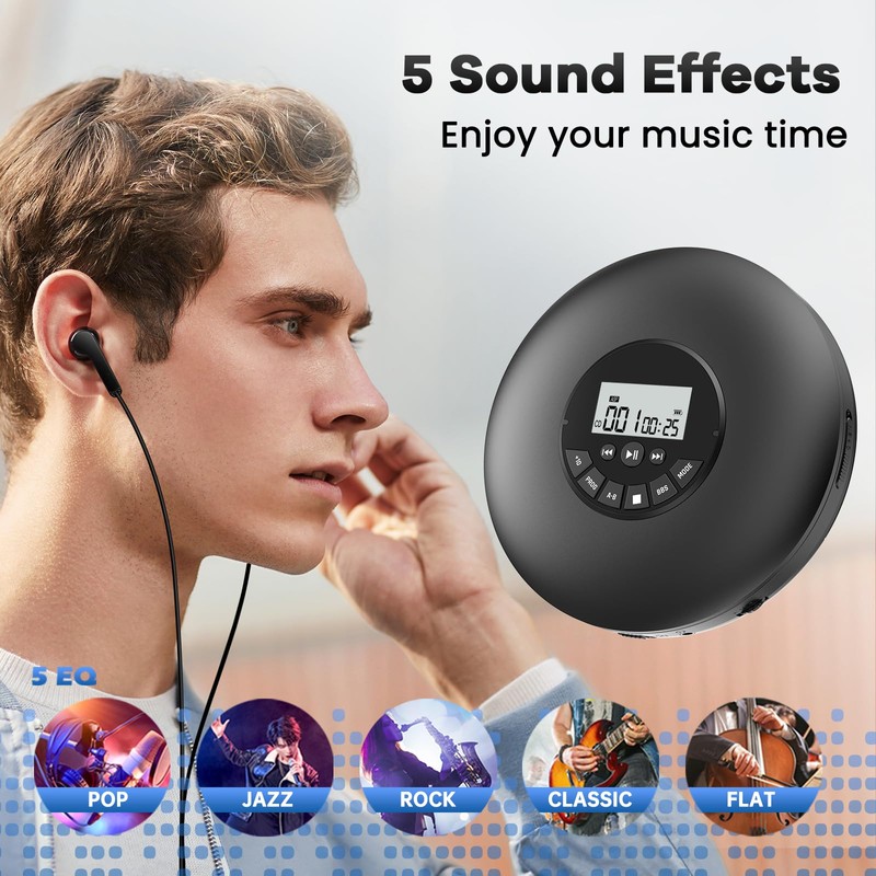 - A Cost-Effective Music Enthusiast Companion: Arafuna CD player have a cost-effective price. Meanwhile, this mini cd player have multiple functions including 10+, repeat A-B, PROG, unti-skip, last memory and search for a customisable listening experience. Due to its advanced chip, high bit rate and sampling rate support you can own five sound settings (BBS, Pop, Jazz, Rock and Classic)