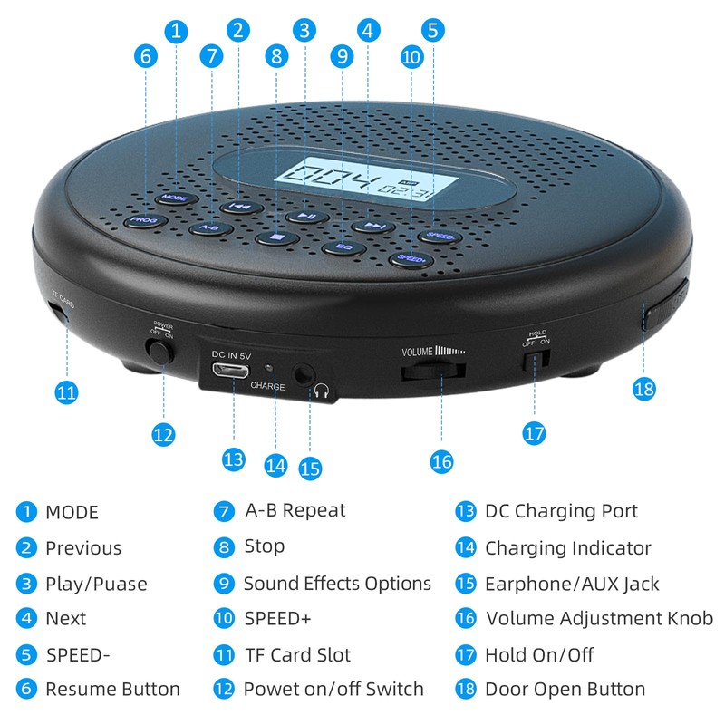 - 【A-B Repeat and Last Memory】Our cd player with speaker can record the position of the last play. When you open, it will start from the track where you stopped. The A-B repeat function of this cd player is great for you when learning some new knowledge or language. We will offer 12-month warranty and friendly customer service.