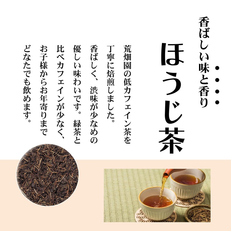 - Low caffeine for peace of mind. By roasting low-caffeine tea in the wild field, you can even reduce caffeine. From children to the elderly, those who want to drink tea before sleeping, can enjoy it regardless of the time of time and time of day