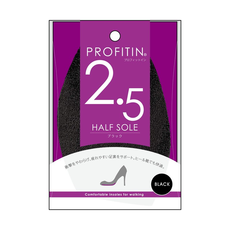 Arakawa Sangyo Women's Profit-In Insole, Half Sole, Black, Black