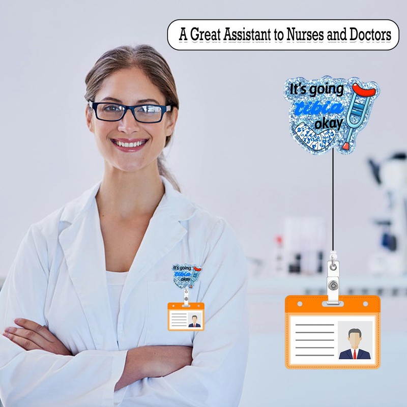 Arakulago It's Going Tibia Ok Ortho Badge Reel Retractable Nursing Funny Nurse Badge Holder with ID Clip Accessories Doctor Hospital Medical Assistant CNA RN Name Badge Clip Glitter Acrylic Yu63P