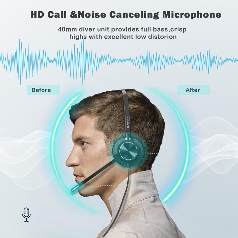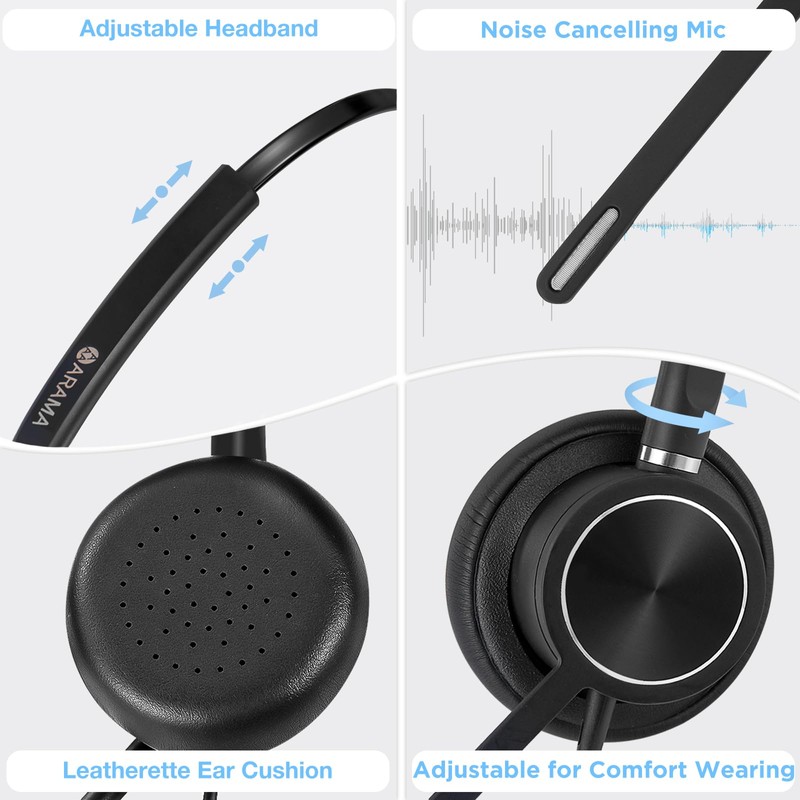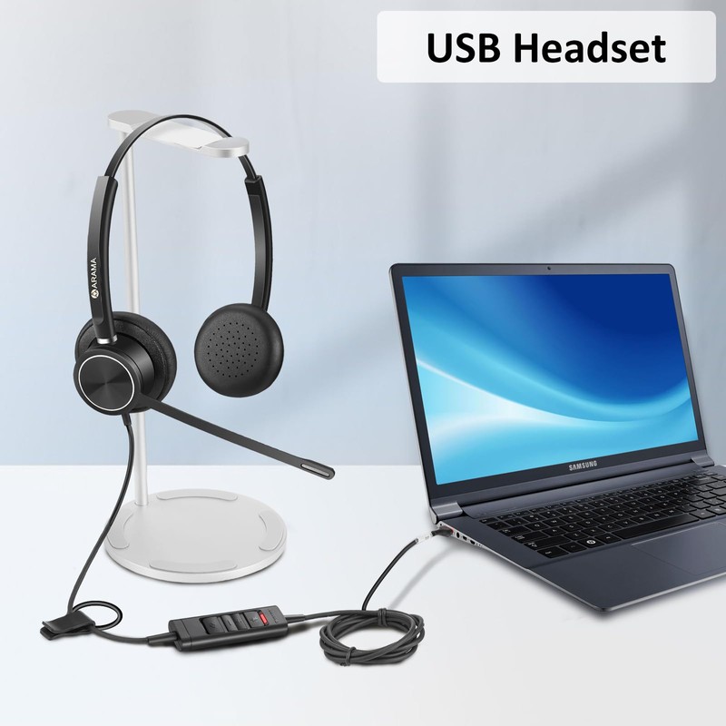 • ✅【Superb Audio Quality】: USB Headset with Noise-Canceling Microphone Features Wideband Audio and Enhanced Digital Signal Processing (DSP) delivers clear, natural, and rich audio. the Arama 812USB headset brings a crystal-clear communication experience,Whether you work from home or in a busy office,Acoustic Shock Protection(ASP) to protect your hearing.