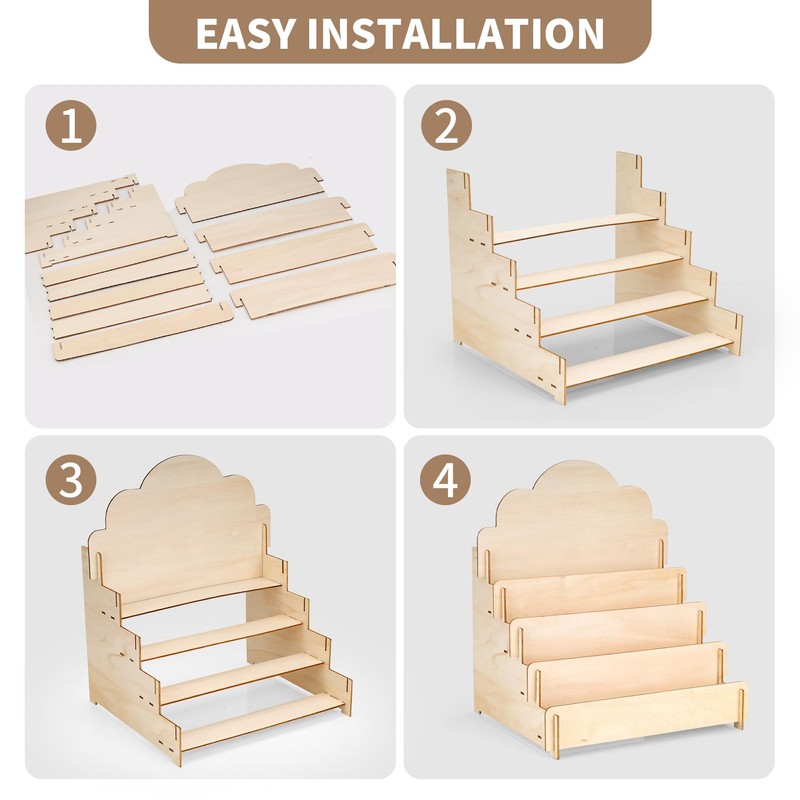 - 4-Layer Design: This wooden postcard display rack adopts a 4-layer structural design, which can fully utilize the vertical space, increase the number of displays, and maintain the overall beauty and cleanliness