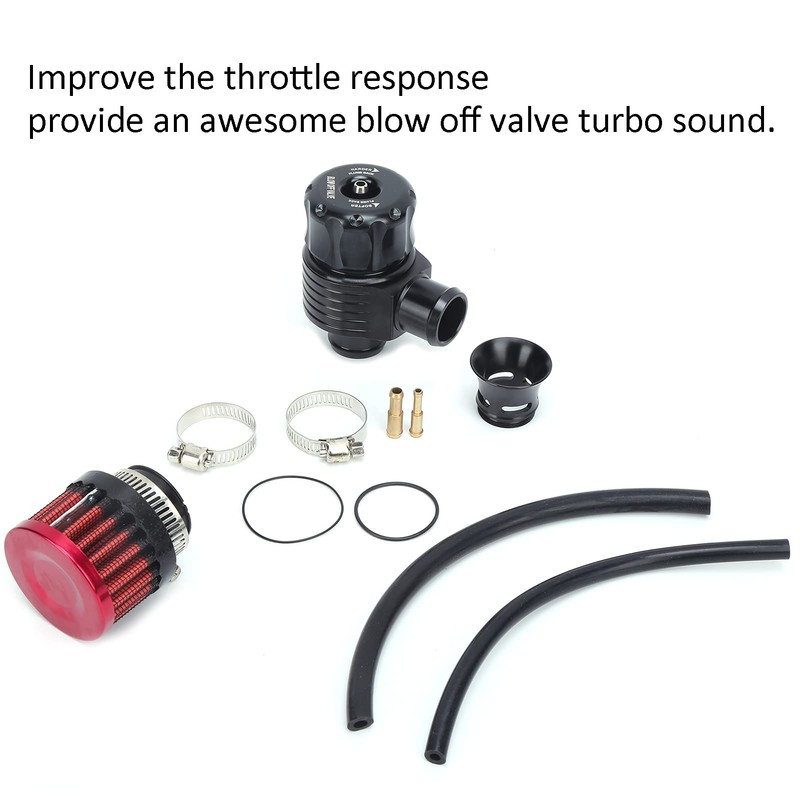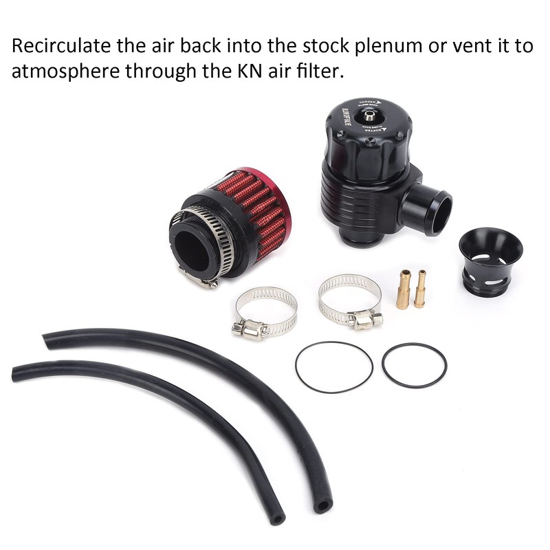 - Función principal: se agrega una válvula de purga al de turbocompresor, que puede mejorar la respuesta del acelerador y proporcionar un sonido turbo de la válvula de purga increíble. Recircule el aire de regreso al compartimento de almacenamiento o descárguelo a la atmósfera a través de un filtro de aire KN. Los ajustes de la ECU y los niveles de impulso más altos permiten obtener un 10-15% más de potencia que el stock, lo cual es práctico.