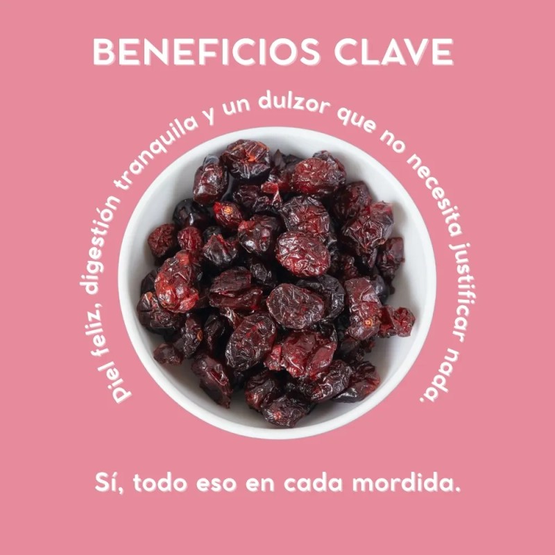 - Arándano deshidratado premium, con ese dulzor ácido que despierta hasta la ensalada más triste.